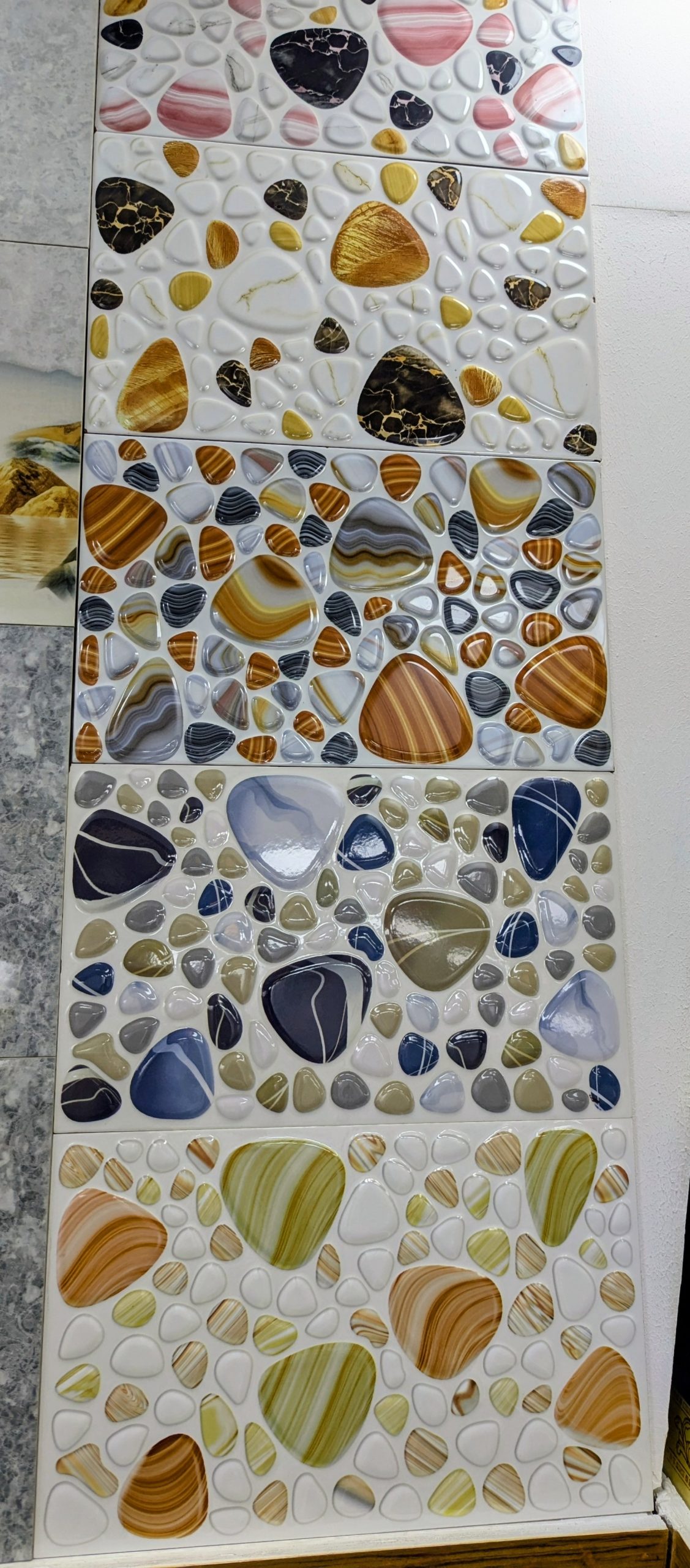 All types of tiles, mosaic, marble, granite, white cement, bathroom fittings importers, wholesalers and retailers.